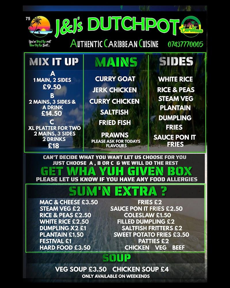 Located conveniently at 75 Southfields Drive in Leicester, J&J’s Dutchpot offers a welcoming and casual atmosphere that invites diners to unwind and indulge in Caribbean cuisine. This restaurant holds a special place in the hearts of locals, particularly because it stands firm in providing 100% halal dishes, a rarity among Caribbean eateries in the area. J&J’s opens its doors for breakfast from 7 am to 2 pm, Monday to Saturday, allowing you to kickstart your day with flavorsome options like pancakes and traditional breakfast plates. The dinner service starts from 5 pm to 10 pm, Thursday through Sunday, featuring a variety of dishes that embody the essence of Caribbean home cooking. The restaurant prides itself on using fresh ingredients and traditional recipes, ensuring that each dish is not only hearty but also bursting with flavor. The welcoming staff and tidy atmosphere make this spot a favorite for solo diners, tourists, and families alike. With free street parking nearby, it’s easy to pop in for a quick bite or settle in for a relaxing meal with friends.